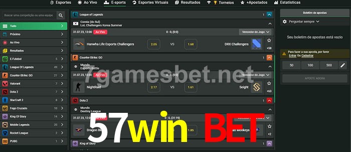 A aposta 57win bet oferece aos jogadores a experiência mais conveniente de apostas em eSports!